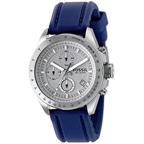 Bold and brilliant, this multifunctional Fossil watch features a blue polyurethane strap and round stainless steel case. Silvertone chronograph dial with white stick indices, logo, date window and three subdials. Chronograph movement. Water resistant to 100 meters. 11-year limited warranty.